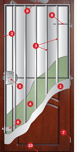 4. Замок багатоспрямованого замикання MUL-T-LOCK® M415G. Посилений загартованой марганцевистою пластиною.
