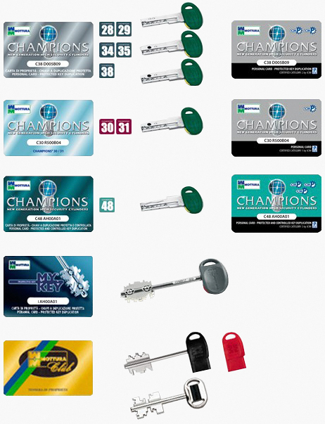 Champions, а також ключів до сувальдних замків системи MY KEY. Копії патентованих ключів можливо виготовити тількі за наявності оригінального ключа та кодової картки власника.