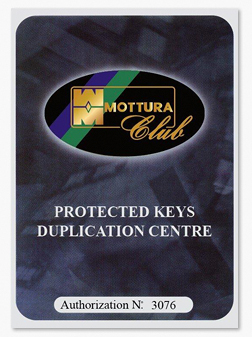 MOTTURA CLUB – це мережа спеціалізованих професійних майстерень, які вповноважені виготовляти дублікати патентованих ключів MOTTURA (Моттура), а також надавати професійні технічні консуьтації стосовно замкової продукції MOTTURA (Моттура). Статус авторизованих ценрів MOTTURA CLUB (Моттура Клуб) підтверджений сертіфікатом №3076.